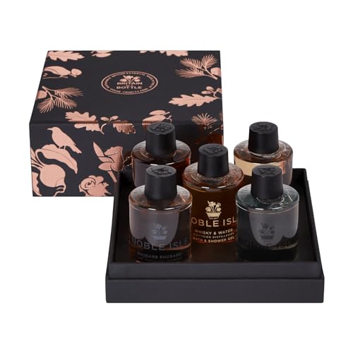 Dive into an exquisite bathing experience with the Noble Isle Shower Gel Gift Set – Great British Wanderer. This unisex body care collection, crafted for both men and women, includes five enchanting fragrances that pay homage to the beautiful landscapes of the UK. Each shower gel is infused with unique botanical extracts sourced from across Britain, providing a harmonious blend of scents that transport you to the heart of the British countryside. The set includes popular fragrances such as Rhubarb Rhubarb!, Whisky & Water, Fireside, Willow Song, and Scots Pine—each meticulously crafted to deliver a luxurious and refreshing cleansing experience. Made in the UK, this limited edition gift set is an embodiment of sophistication and elegance, making it a perfect gift for anyone who appreciates high-quality skincare and artisanal fragrances.