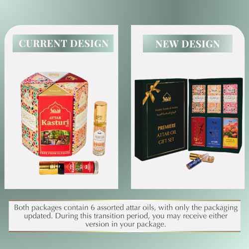 Premiere Attar Oil Set by Dukhni | Arab perfume oils for men and women | 6 assorted scents x 6ml | Arabian oud oil fragrances | Sampler Gift set, Halal & Vegan Islamic Scents