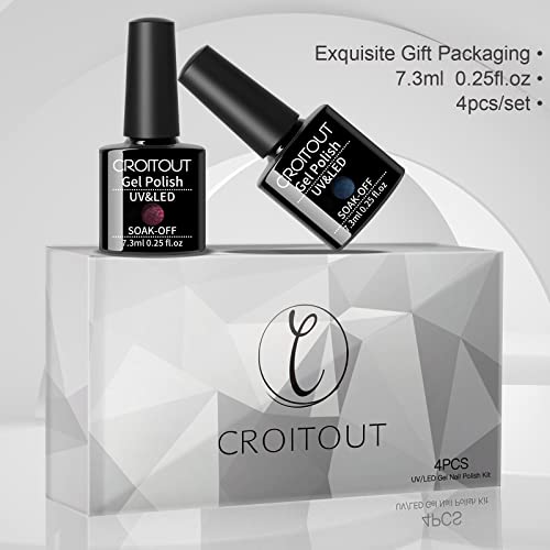 Croitout Cat Eye Gel Nail Polish Set with 1 Magnet, Shellac Nail Gel Polish Colours Set, Magnetic Gel Nail Polishes Set, Soak Off Shellac Gel Nail Polish UV Kit, Best Gift for Women 4 x 7.3ml