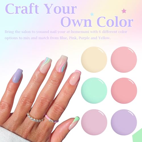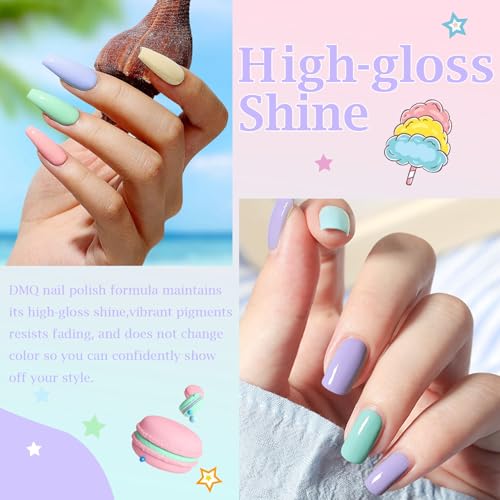 DMQ Pastel Nail Polish Set, 6Pcs Spring Summer Nail Varnish, Candy Macaroon Dopamine Nail Polish Gel, Pink Yellow Green Purple Quick Dry Nail Paint Gel for DIY Nail Art at Home – No Need Cure 12ML