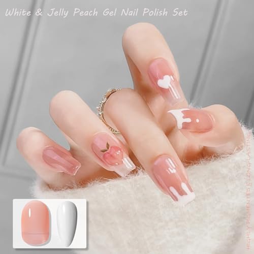 Gel Nail Polish Set, Jelly Nude & White French Manicure Kit, Soak Off UV/LED Gel Nail Varnish, Sheer Nude Gel Nail Polish With White Nail Liner Painted Gel Polish for Nail Art DIY