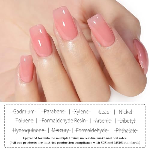 Jelly Nail Polish – Nude Nail Polish – Translucent Nude Pink Nail Varnish – Long Lasting Nail Varnish Quick Dry – Nail Polish for DIY Nail Art French Manicure, No Need Cured