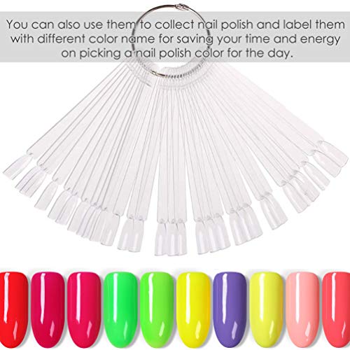 KINGMAS 150 Pcs Nail Swatches Sticks with Ring, Clear Nail Art Color Display False Nail Tips Polish Practice Sticks (1~150 Number Posted)