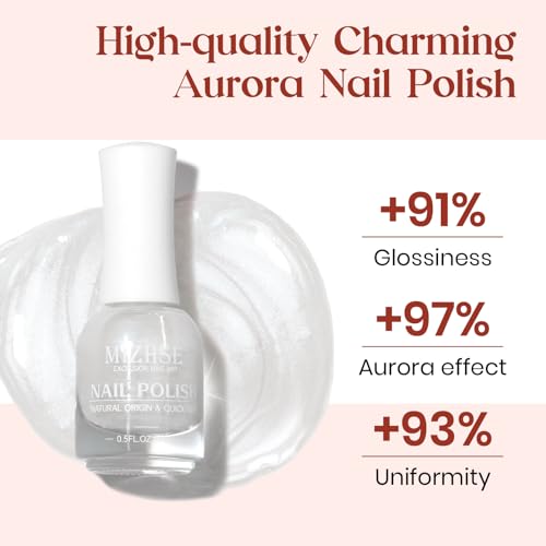 MIZHSE 15ml Quick Dry Nail Polish Blue White Pearl Nail Polish Varnish Glitter Holographic Nail Art Fingernail and Toenail Polish Manicure DIY at Home