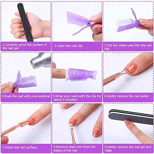 Nail Polish Gel Remover Tools Kit with Nail Remover Clips,Nail File, Nail Remover Pads, Nail Brush