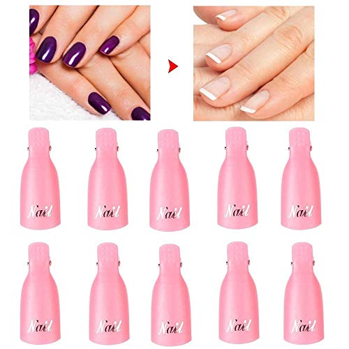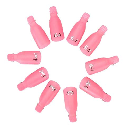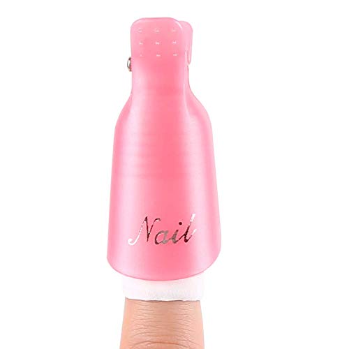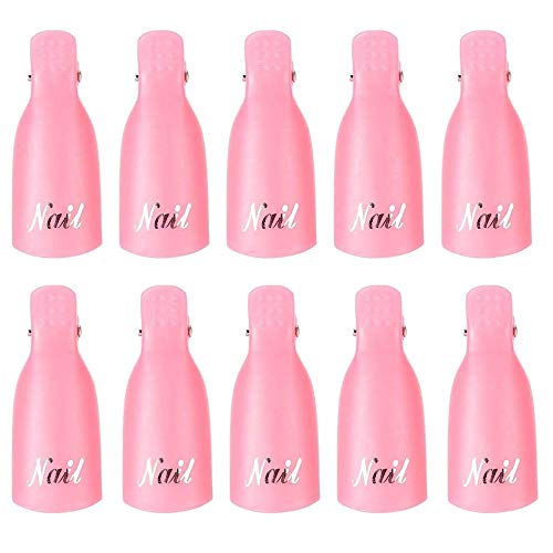 Nail Polish Remover Clips Set, Nail Art Soak Off Clip Cap UV Gel Polish Remover Wrap Nail Tool, 10Pcs (Pink)