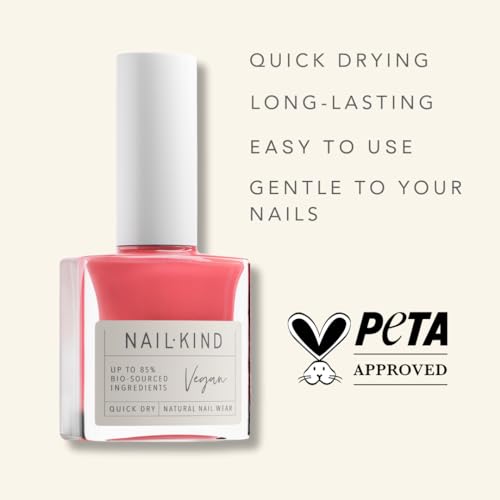 NAILKIND Pink Nail Polish – Bubblegum – High-Gloss – Modern-Pink Nail Varnish – Vegan Nail Lacquer is a standout shade in NAILKIND’s collection. This high-gloss, vibrant pink hue offers a refreshing pop of colour. It is vegan, PETA certified, cruelty-free, and formulated to be quick-drying, long-lasting, and chip-resistant. Perfect for creating a salon-quality manicure at home.