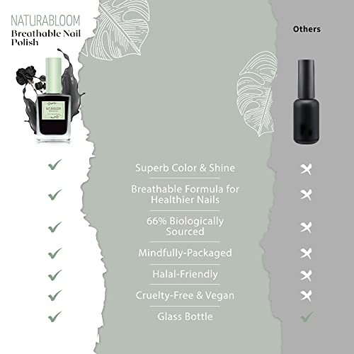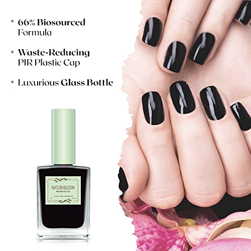 NATURABLOOM Breathable Black Nail Polish – Premium Quick Dry Nail Varnish – Halal, Vegan & Organic, Dark Coal