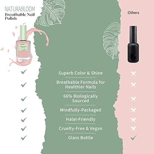 NATURABLOOM Pale Pink Nail Polish (Pink Dahlia) – Breathable Vegan Nude Nail Varnish – Quick Dry & Long Lasting, 14 ml
