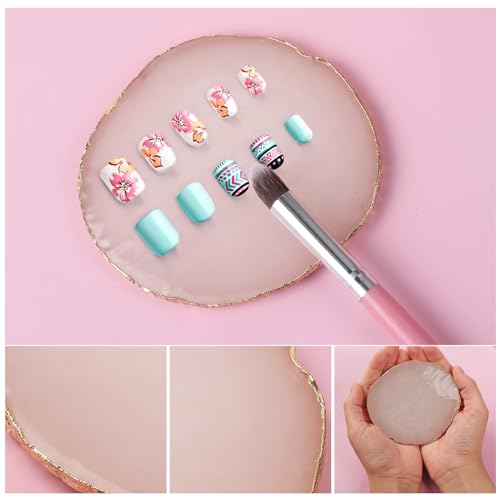 Ouligay Resin Nail Art Palette Gold Nail Colour Display Nail Polish Color Mixing Palette for Diy Nail Tech Supplies (White)