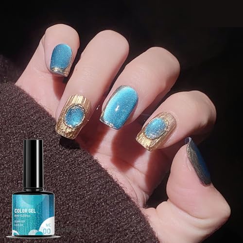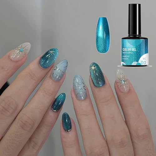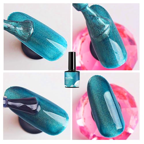 Pearl Gel Metal Nail Polish, Blue Shell Thread Glitter Holographic Soak Off UV LED Varnish, Shimmering Metallic Shining Sparkling Long Lasting, DIY Art Manicure at Home, Gift for Women & Girls