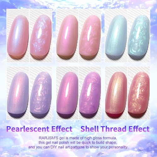 RARJSM Pearlescent Gel Nail Polish 6 Colors Set Mermaid Dreams Iridescent Shell Glitter Gel Polish Pink Blue Green Purple Gold Shimmer Swirl Thread Effect Soak Off LED UV Curing Requires Home Salon
