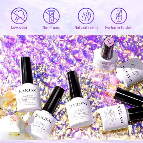 Discover the RARJSM Pearlescent Gel Nail Polish Set with 6 mesmerising colours. Ideal for a home salon, each shade offers a unique iridescent shimmer.