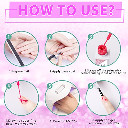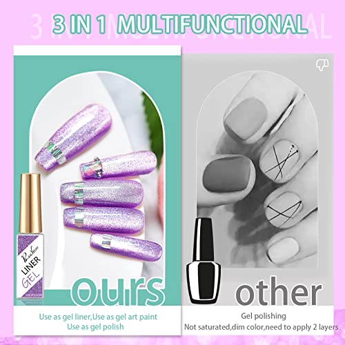 Rechoo 6pcs Reflective Glitter Gel Liner Nail Art, 10ml Multicolor French Manicure UV Gel Polish Set, Color Shellac Nail Polish for Fineliner Nail Design