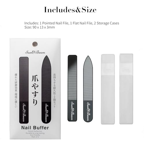 Effortlessly achieve salon-quality nails at home with the Sun&Beam Nails Glass Nail File and Nano Nail Buffers Kit. This 2-piece set, stored in an elegant box, includes a crystal shine polisher and a professional manicure tool for smooth, shiny, and healthy nails.
