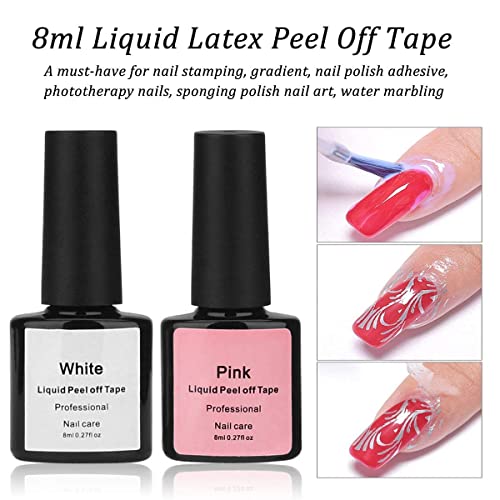 TopDirect 8 Colors Nail Stamping Gel Polish 8ml with 4pcs Nail Stamping Templates + 2x8ml Liquid Latex Peel Off Tape + 2 Stampers with 2 Scrapers, Nail Art Stamping Kit Nail Plate Print Manicure Tool