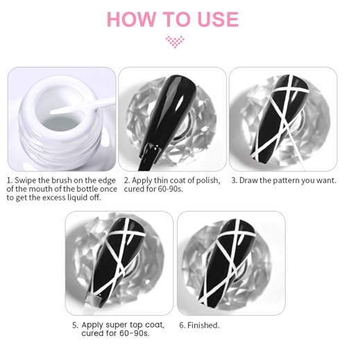 White Nail Polish – Painted Gel Nail Polish – White Gel Liner Nail Polish – 12ml Gel Liner Nail Art with Thin Brush – Nail Color Painting Nail Gel – Soak off UV Lamp Manicure Salon