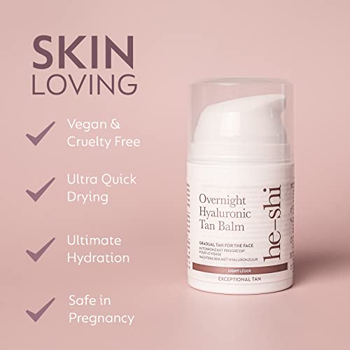 He-Shi Gradual Face Tan – Overnight Hyaluronic Tan Balm – Anti-Ageing Gradual Tanning Moisturiser – Hydrating & Firming – Evening Skincare with Lavender for Natural Radient Skin, Vegan & Cruelty Free