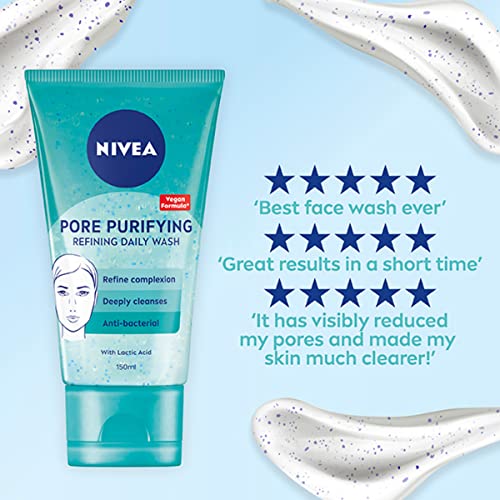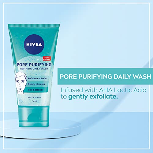 NIVEA PURIFY PORES Daily Wash Scrub (150 ml), Purifying Face Scrub, Facial Scrub Prevents Blackheads, Exfoliating Scrub with Natural Magnolia Extract and Lactic Acid
