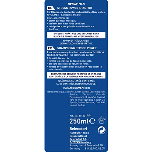 Nivea Men Strong Power Hair Care Shampoo 250 ml (Pack of 6)