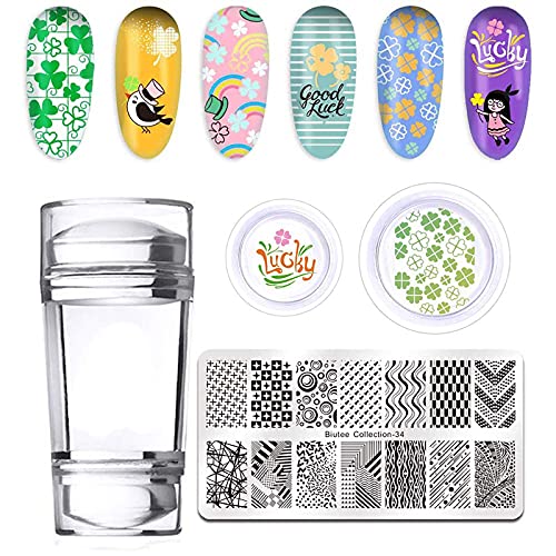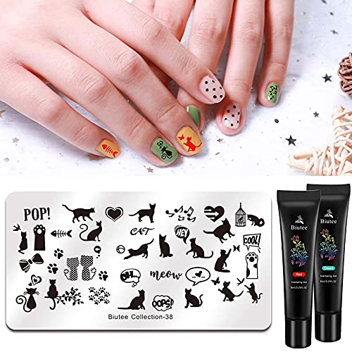 Biutee Nail Stamp Kit with Stamper and Scraper,8 Colors Nail Stamping Polish Gel and 5pcs Nail Stamp,Nail Template for Nail Salon Designs Nail Image Stamp Plates Manicure Templates Nail Art Tools