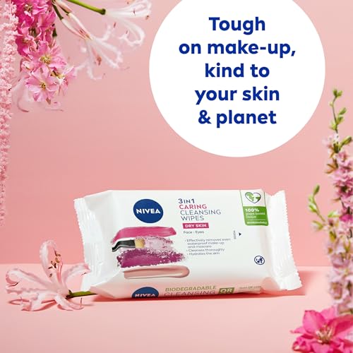 NIVEA Biodegradable Cleansing Wipes Dry Skin (40 sheets), Biodegradable Wipes made from 100% Plant Fibres, Make-Up Wipes, Face Wipes Makeup Remover