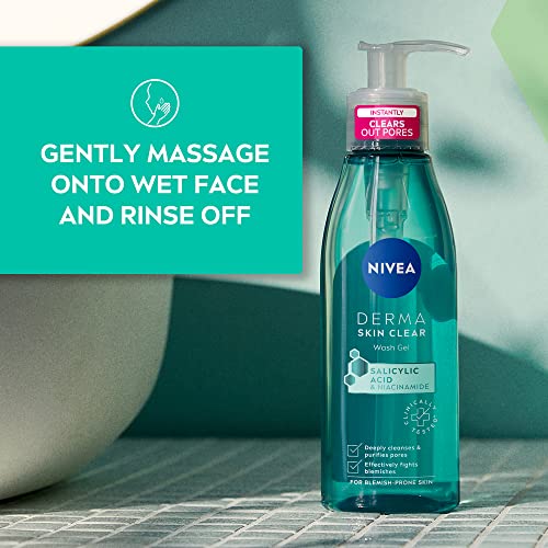 NIVEA Derma Skin Clear Wash Gel (150ml), Deep Cleansing Salicylic Acid Face Wash Enriched with Niacinamide to Cleanse Pores and Remove Impurities, For Blemish-Prone Skin