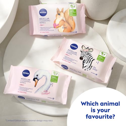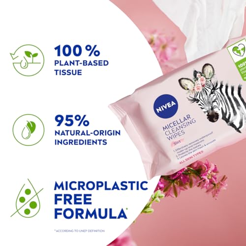 NIVEA Limited Edition Micellar Cleansing Wipes (25pcs), Biodegradable Wipes with Micellar Technology, Facial Wipes Effectively Removes Waterproof Make-Up and Mascara