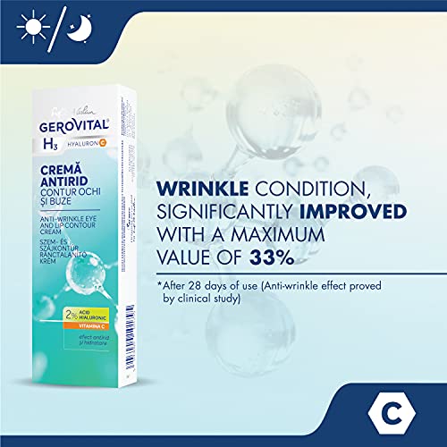 Anti-Wrinkles Eye and Lip Cream with Hyaluronic Acid, Vitamin C and E, Moisturizes the Skin, Prevents and Reduces Expression Lines, 15 ml, Gerovital H3 Hyaluron C