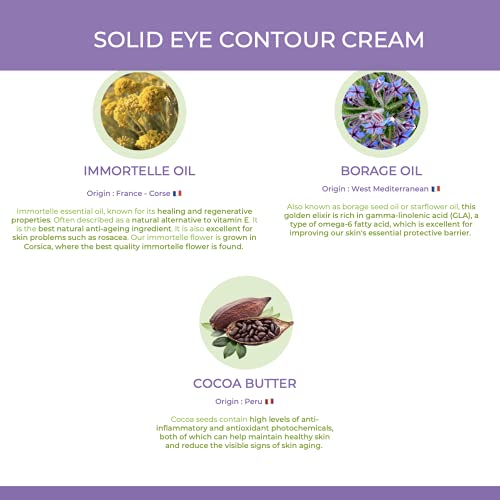 Balade en Provence, Solid Eye Contour Cream – 18G. The 1st in the World Certified Organic by Bio Earth Durable and Vegan by Vegan Society. Free Fragrance, Handmade in France,100% Natural, Cruelty Free