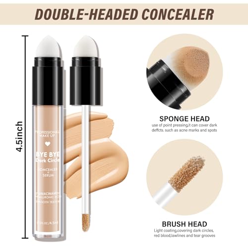 Boobeen Matte Full Coverage Concealer, Cream Concealer Stick for Dark Circles, Spots, Under Eye Concealer with Double Headed Applicator, Smooth
