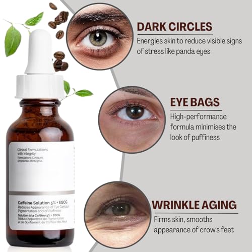 Caffeine Solution 5% + EGCG, Caffeine Eye Serum, Under Eye Cream for Reduce Circles and Puffy Eyes, Caffeine Eye Cream for Anti Aging Wrinkle, Eye Bags Removal, Fade Fine Lines, 30ml