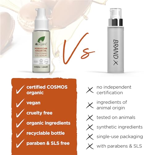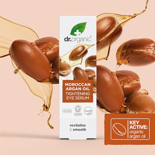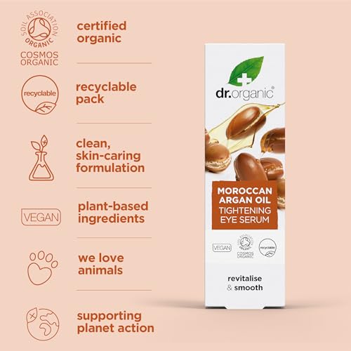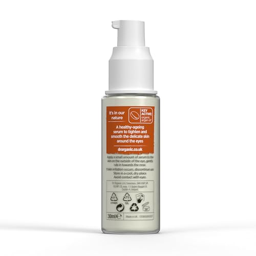 Dr Organic Moroccan Argan Oil Eye Serum, Revitalising, Fine Lines, Mens, Womens, Natural, Vegan, Cruelty-Free, Paraben & SLS-Free, Certified Organic, 15ml