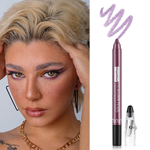 Eyeshadow Pen, Crayon Waterproof Eyeshadow Stick, Shimmer Cream Eye Shadow Pencil, Lasting Waterproof And Not Blooming Pearlescent Eyeliner Pencil Create Glitter Eye Makeup (Fog Purple)
