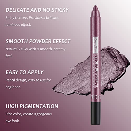 RoseFlower 12 Colors Eyeshadow Pencil Crayon Waterproof & Long Lasting Eyeshadow Stick Shimmer Cream Eyeshadow Pen Create Glitter Eye Makeup, Easy to Use, Pencil Makeup Eyeshadow Gift for Women