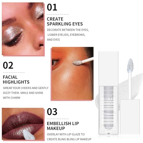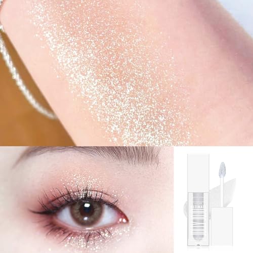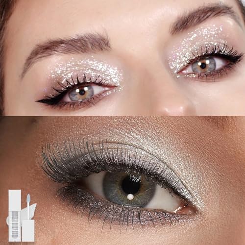 Glitter Liquid Eyeshadow, White Silver Shimmer Sparkly Cream Eye Glitter Liquid Eyeliner, Diamond Metallic Highly Pigmented Eye Shadow for Women Girls Eye Makeup