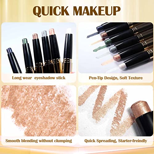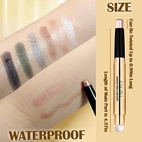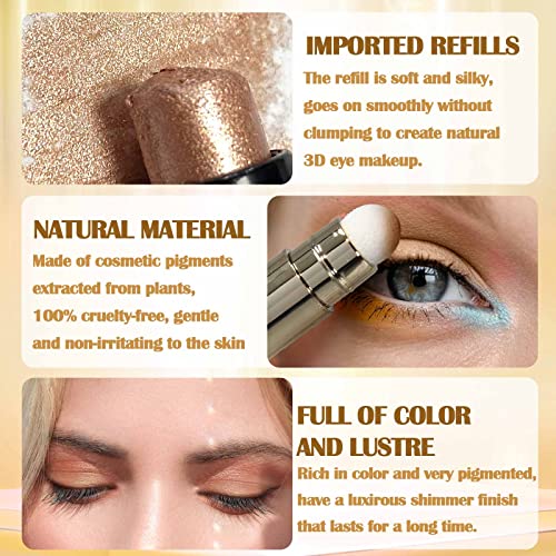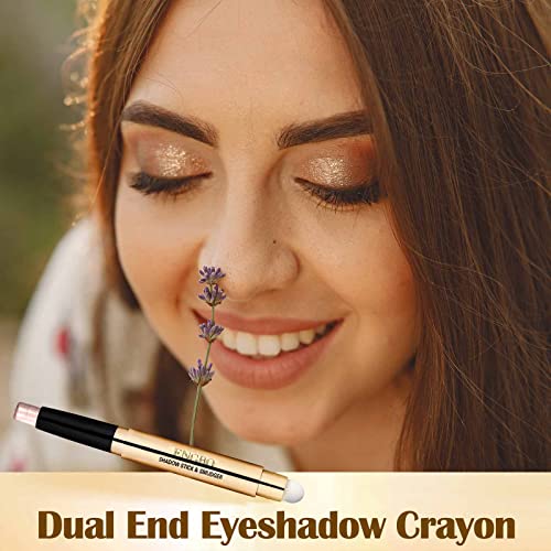 Prreal Eyeshadow Stick,Dual End Shimmer Eyeshadow Stick,Pearl Eyeshadow Pencil Crayon,Waterproof Long-lasting Glitter Eye Shadow Cream Stick with Soft Brush for Eye Makeup (03# Rose Gold Shimmer)
