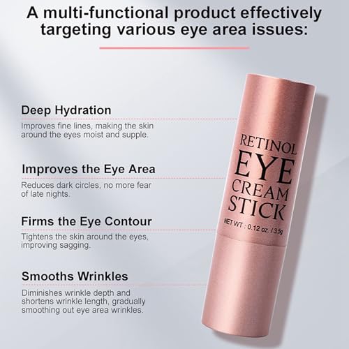 Retinol Eye Stick – Retinol Eye Cream – Eye Cream for Dark Circles and Puffy Eyes – Eye Cream Anti Aging Fade Fine Line Smooth Tender – Moisture Hydrate Lock Water – Reduce Dryness Restore Radiance