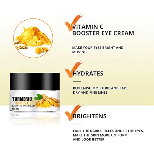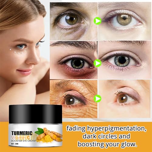 Turmeric Eye Cream Anti Aging – Tumeric Eye Cream for Dark Circles – Vitamin C Eye Cream – Even Skin Tone Relieve Puffy Dullness Restore Radiance – Moisture Hydrate Smooth Tender Firm Lift Elasticity
