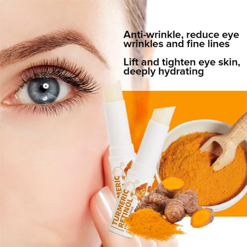 Turmeric Retinol Eye Stick,Turmeric Eye Cream,Hydrating Turmeric Under Eye Cream,Turmeric Eye Cream Stick for Dark Circles,Anti-Aging Retinol Eye Brightener, Hydration Moisturising Firming Eye Cream