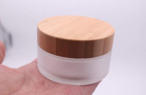 VASANA 2PCS 50ml/50g/1.7oz Environmental Bamboo Lid Frosted Glass Bottle Cream Jars Empty Cosmetic Comtainer For Face Cream Eye Cream Lip Balm Ointments Salves Nail Powder
