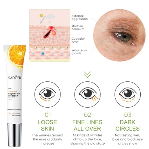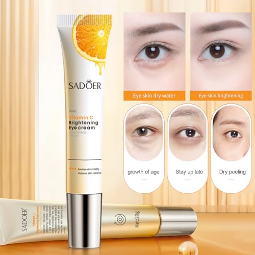 Vitamin C Eye Cream for Dark Circles and Puffy Eyes, Brighten Instant Tightener Under Eye Repair Cream, Hydrating Brightening Anti Aging Eye Bags Remover Wrinkle Filler Eye Serum for All Skin Types is the ultimate solution for rejuvenating tired eyes. Infused with potent Vitamin C, this lightweight formula targets dark circles and puffiness, providing an instant lift and a hydrated, youthful appearance.