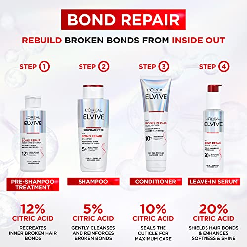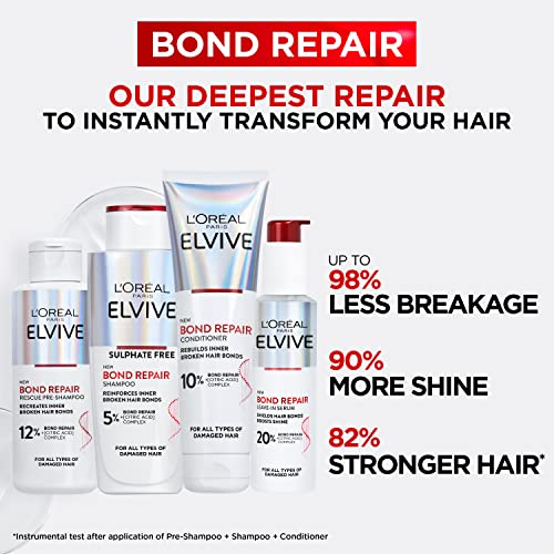 L’Oreal Paris Elvive Bond Repair Hero Set for Damaged Hair, Pre-Shampoo Treatment 200ml, Shampoo 200ml, Conditioner 150ml, Leave-In Serum 150ml, Intensive Repair Treatment, Rebuild Broken Hair