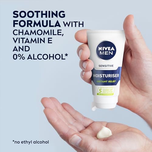 NIVEA MEN Sensitive Face Moisturiser (75ml), Men’s Moisturiser with 0% Alcohol, Made for Sensitive Skin, Men’s Skin Care Essentials (Packaging may vary)