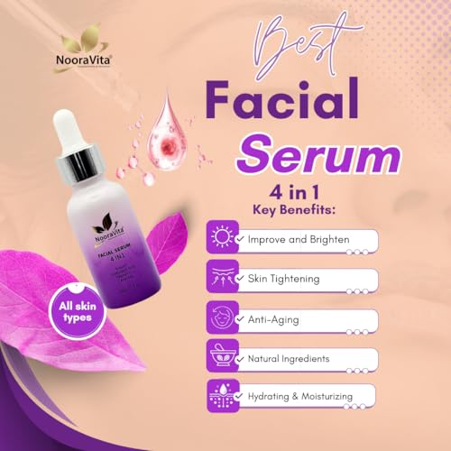 Facial Serum 4 in 1 (30ml) Arbutin, Hyaluronic Acid, Vitamin C, Ceramide. Vegan and Halal Friendly by NooraVita.