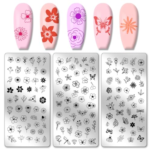 PH PandaHall 3pcs Nail Stamping Plates, 138 Patterns Flower Leaf Butterfly Nail Stamper Nail Art Stencils Print Nail Stencils Stainless Steel Nail Image Plates for Nail Art Design Manicure Salon