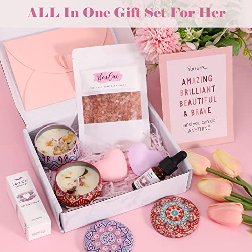 Lavender&Rose Bath Sets Pamper Gifts for Women Birthday, Unique Skin Care Pamper Hamper for Women Self Care package for Her, Relaxation Spa Gifts Set Get Well Soon Gift for Women Best Friend, Sister
