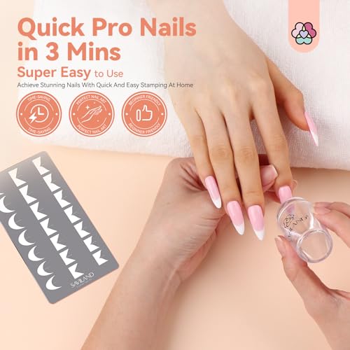 SAVILAND Nail Stamping Plate Set: 4PCS Stamper Stencils French Tip Nails Art Tools Wave Stripes Geometric Image Nail Designs Plates Kit Stainless Steel Reusable DIY Manicure
