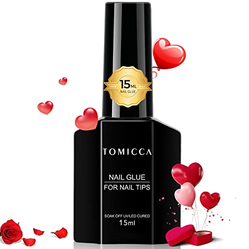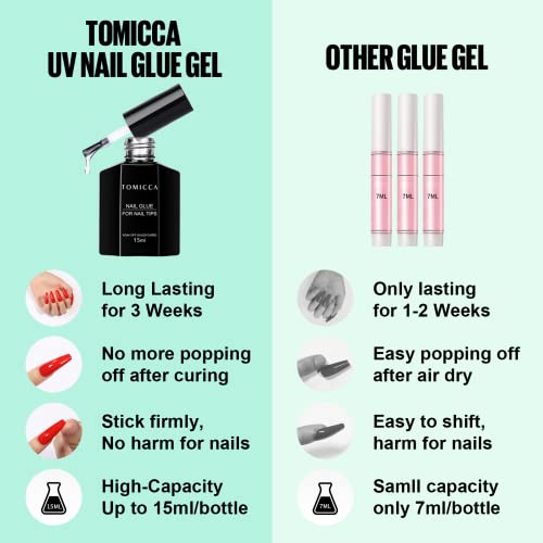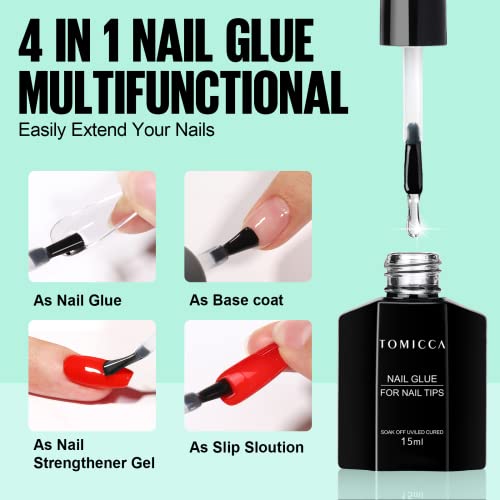 TOMICCA Gel Nail Glue – 15ml/4 in 1 Super Strong Nail Glue Compatible with Acrylic-Nails, Soft Gel Nail Tips and Press On Nails (Curing Needed), Convenient and Fast, Long Lasting and Easy to Use