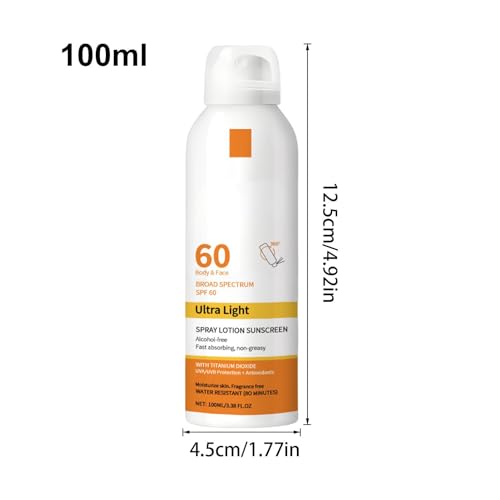 SPF 60 Sun Protection Spray, Sunscreen Mist, Moisturising Spray Lotion, Sun Protection For Body, Non-Greasy & Water-Resistant Sunscreen, Lightweight, UVA & UVB Protection